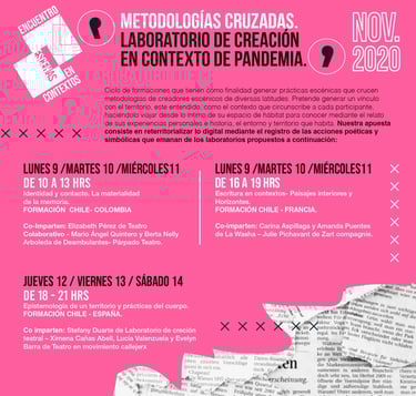 Fundación plataforma de investigación, reflexión, intercambio, producción de saberes y acción en torno al vínculo entre Territorio, Comunidades y Artes Escénicas. Nace en 2020 con el fin de generar acciones que contribuyan a la transformación social a través de las Artes Escénicas en contextos específicos.