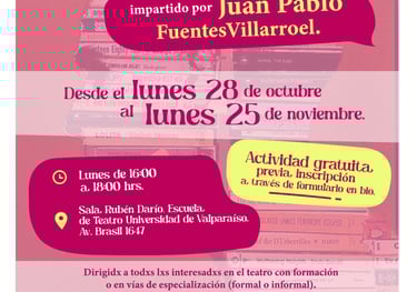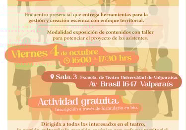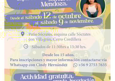 Taller de caráter comunitario, impartido en el espacio Cultural Patio Sócrates, guiado por la dramaturga Javiera Mendoza, seleccionada mediante convocatoria.