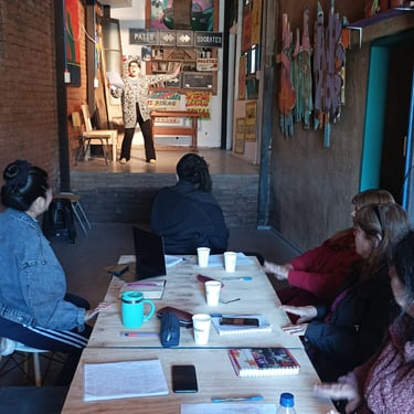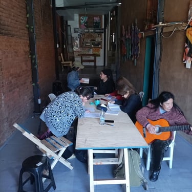 Taller dirigido por Javiera Mendoza realizado en Patio Sócrates dirgido a vecinxs y público comunitario.