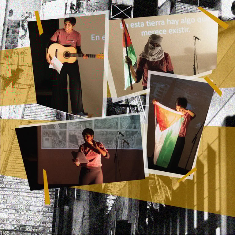 Resumen: Es la primera obra de la trilogía Modos de vida. Busca problematizar la noción de territorio a partir de experiencias artísticas y humanas en sus contextos de realización. En esta primera versión de la obra, se propone una lectura performativa y poética que articula un relato amoroso de un viaje a Palestina, nación ocupada por Israel desde hace más de 70 años. Así, a través de la lectura de crónicas, la activación de archivos sonoros, musicalidades, relatos, registros audiovisuales, afectividades y sensoriales, la artista articula una acción/visión geopoética de Palestina, que nos invita a desafiar los límites fronterizos, geopolíticos y epistemológicos de los territorios.